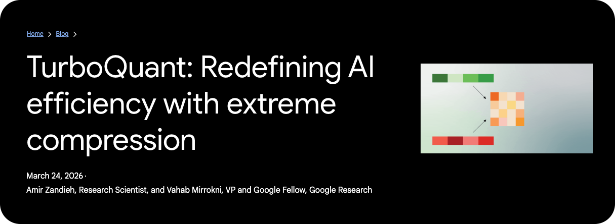 - 구글이 피지컬 AI나 로보틱스 분야에서 터보퀀트를 발전시킬 가능성도 거론되는 중.